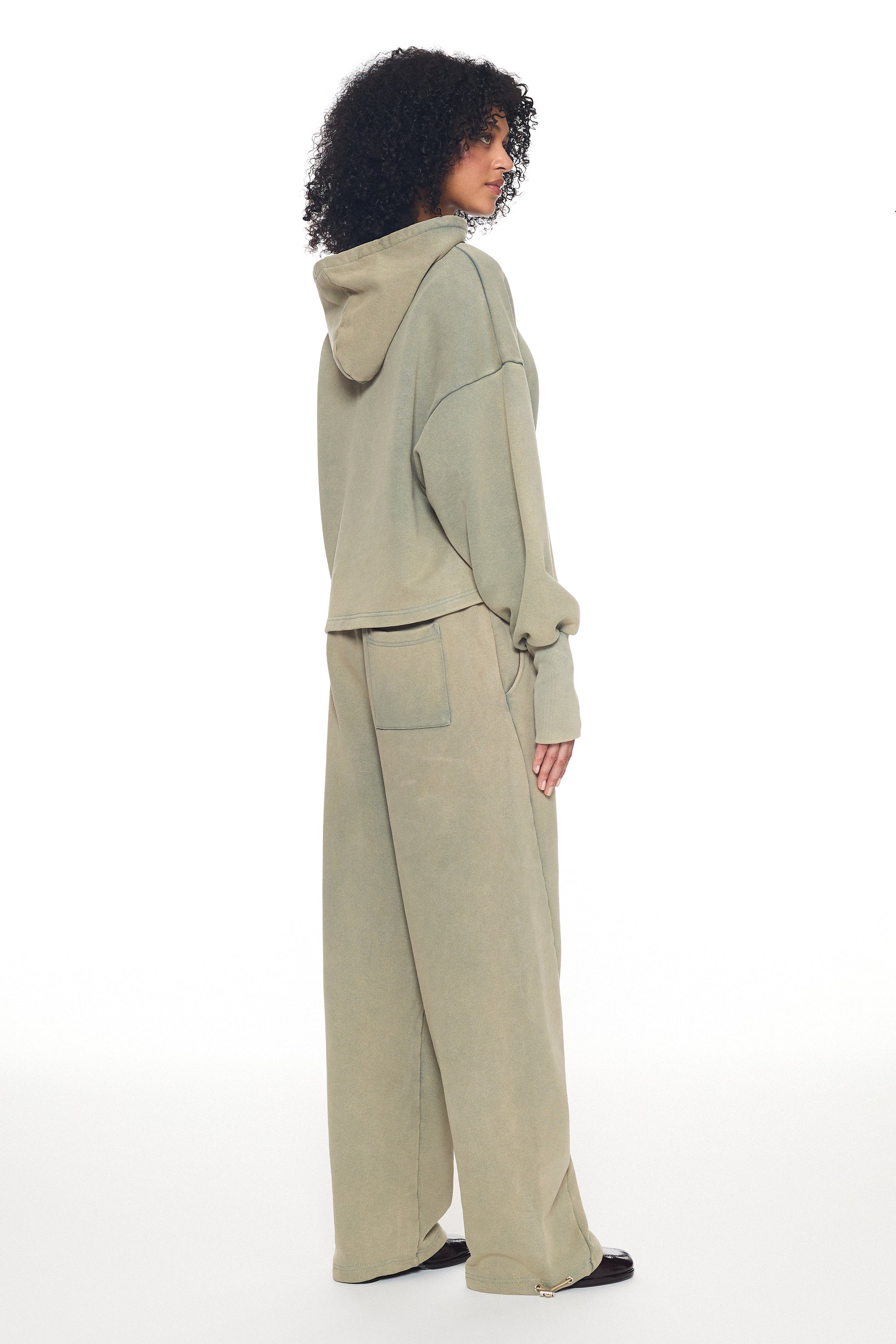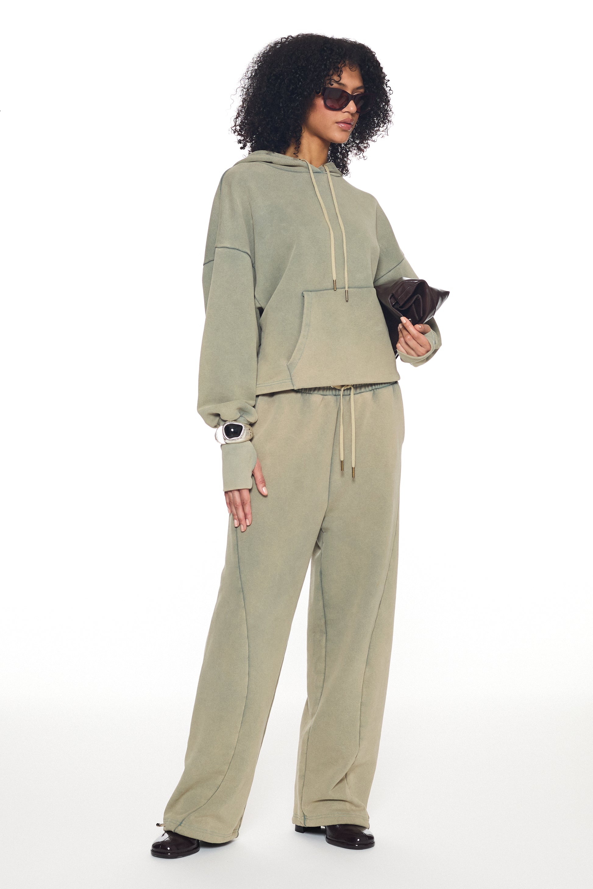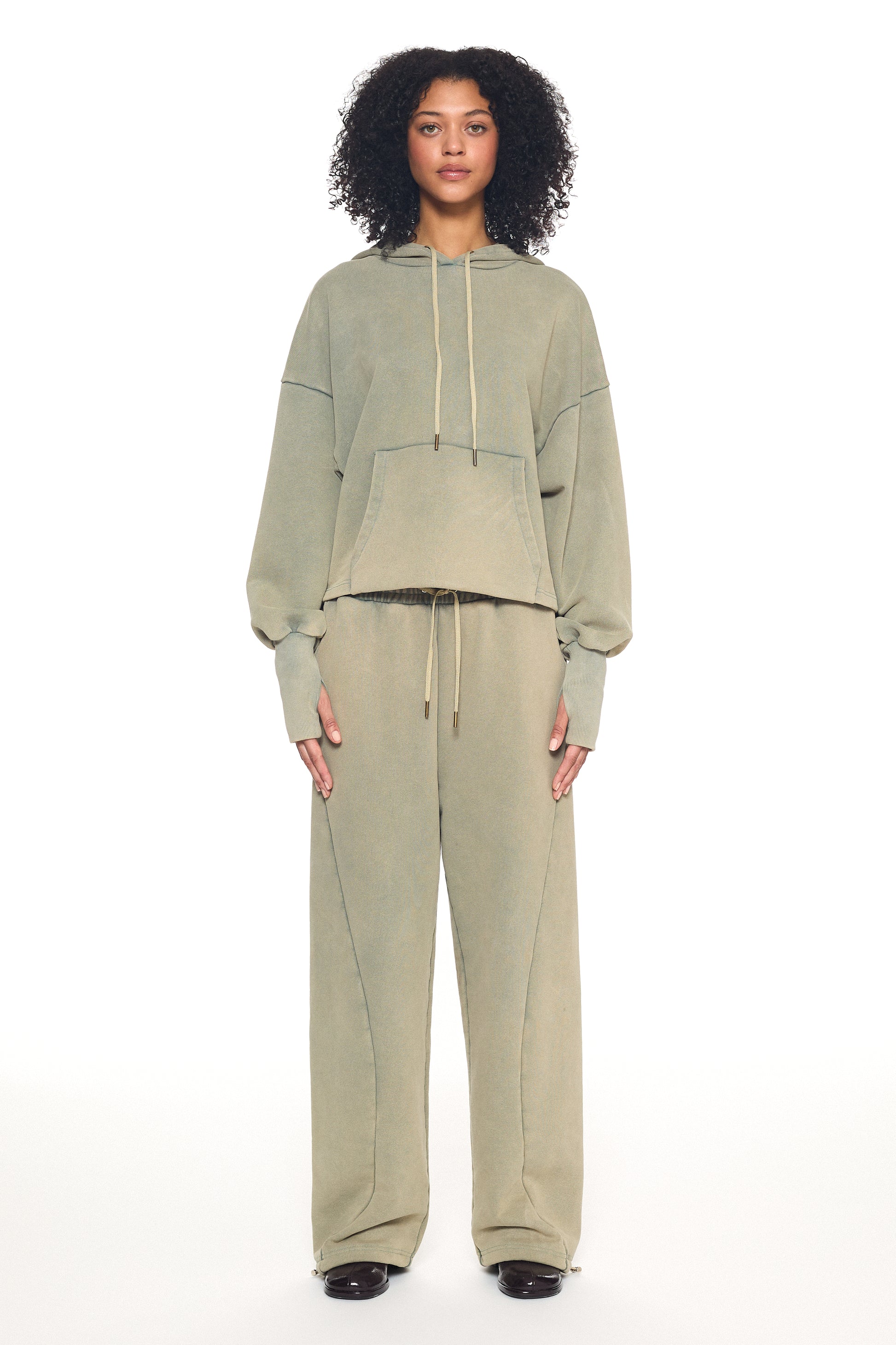 A study in soft structure - the Verde Haze hoodie is cut from a dense yet supple cotton blend, offering sculpted comfort with ease.